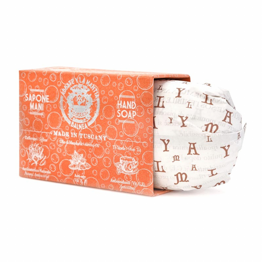 Pevné mýdlo s hypoalergenní vůní hořkých mandlí a výrazného aroma bílého jasmínu. Obsažené lístky zeleného čaje mají antioxidační účinky a společně mandlovým olejem zklidní pokožku vašich rukou. Další složkou mýdla je obsažený extrakt šafránu mající antibakteriální vlastnosti a kromě toho zpomaluje stárnutí kůže.