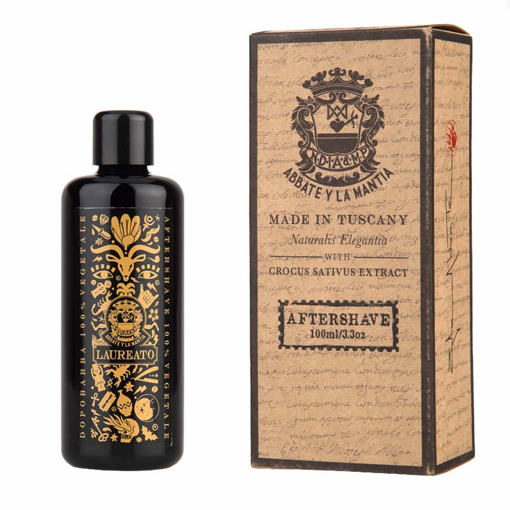 Voda po holení Laureato po použití zanechává na pokožce příjemný pocit. Je vyrobena z přírodního alkoholu z fermentace ječmene. Obsahuje regenerující vitamín E včetně zklidňujícího a ochranného allantoinu. Obsažený extrakt z šafránu napomáhá regenrovat kožní buňky, proto s používáním této vody jen tak nezestárnete. Její aroma je kombinací vavřínu, citronu, zelených mandlí, borovice a cedru.