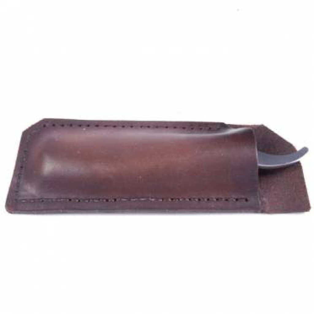 Břitva je uložena v ručně šitém pouzdře ze silné hověziny.