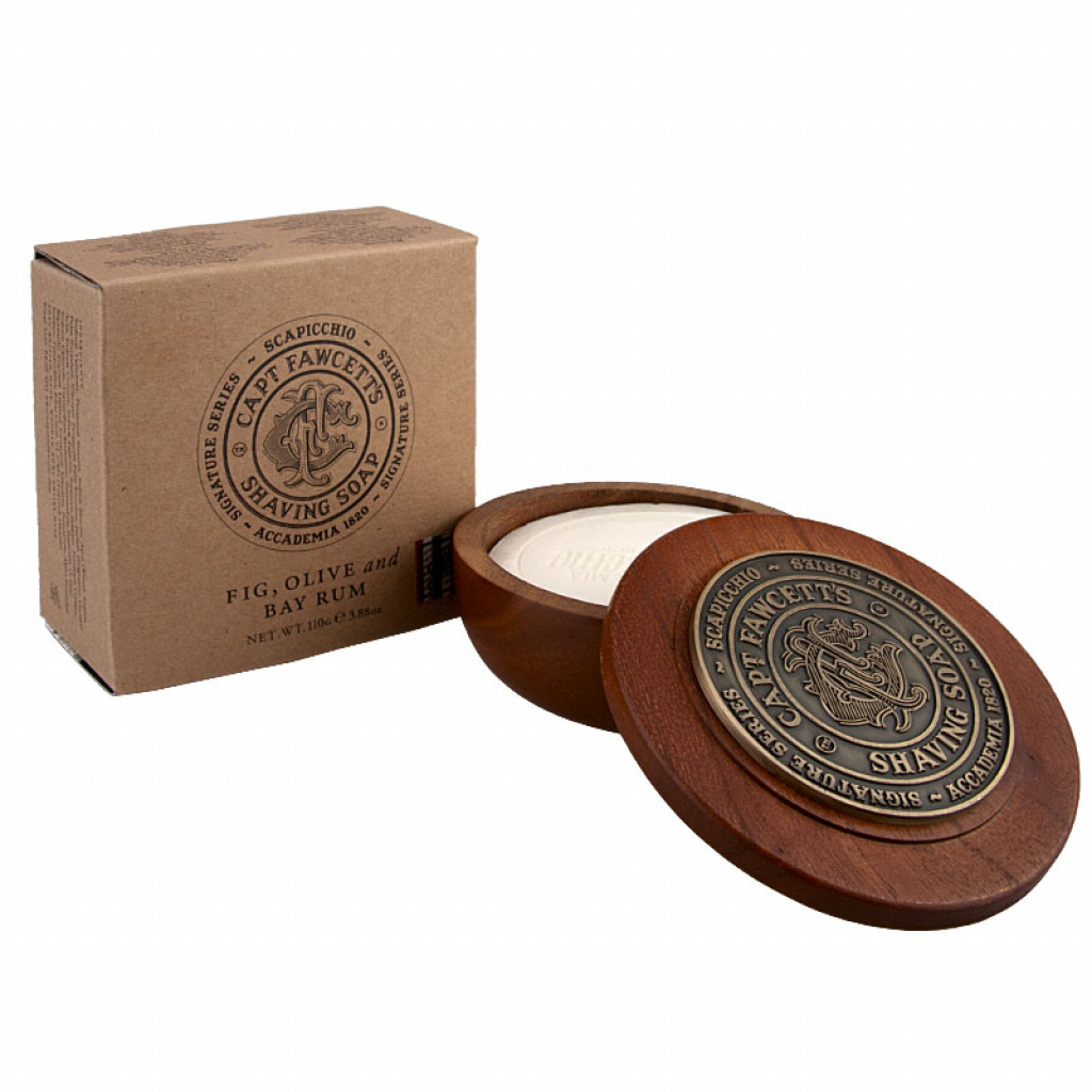 Pevné mýdlo na holení Scapicchio je pojmenováno podle jedné z nejstarších rodin holičů z Itálie. Již od roku 1820, po pět generací je předávána zkušenost z otce na syna. Captain Fawcett se může pochlubit spoluprácí s touto rodinou vytvořením kvalitního mýdla na holení s vůní čerstvých oliv, fíků a bay rumu. Mýdlo je dodáváno v dřevěné misce zdobené elegantní plaketou.