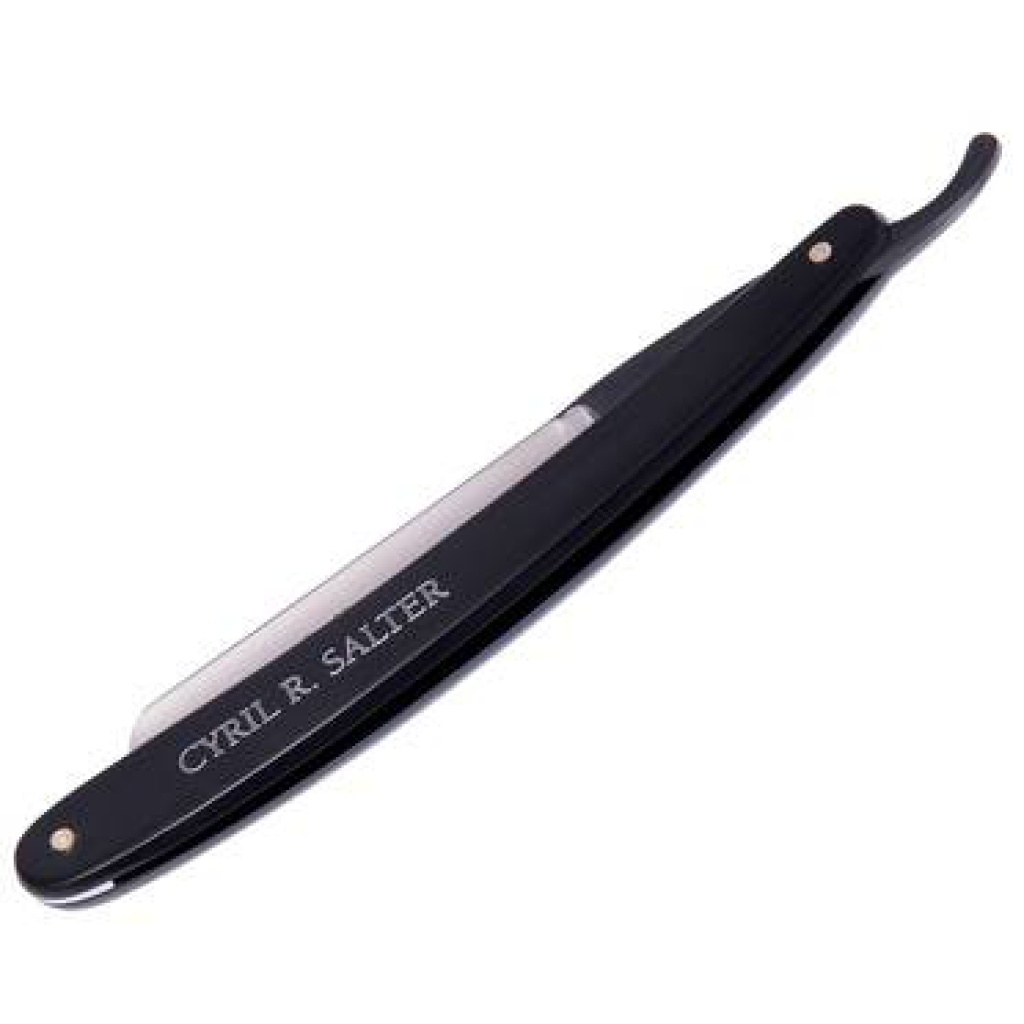 Břitva z uhlíkové oceli vyráběna v Solingenu pro anglickou značku Cyril R. Salter. Ideální pro ty, co přecházejí z holících strojků na břitvy. Černá rukojeť v klasickém a jednoduchém designu.