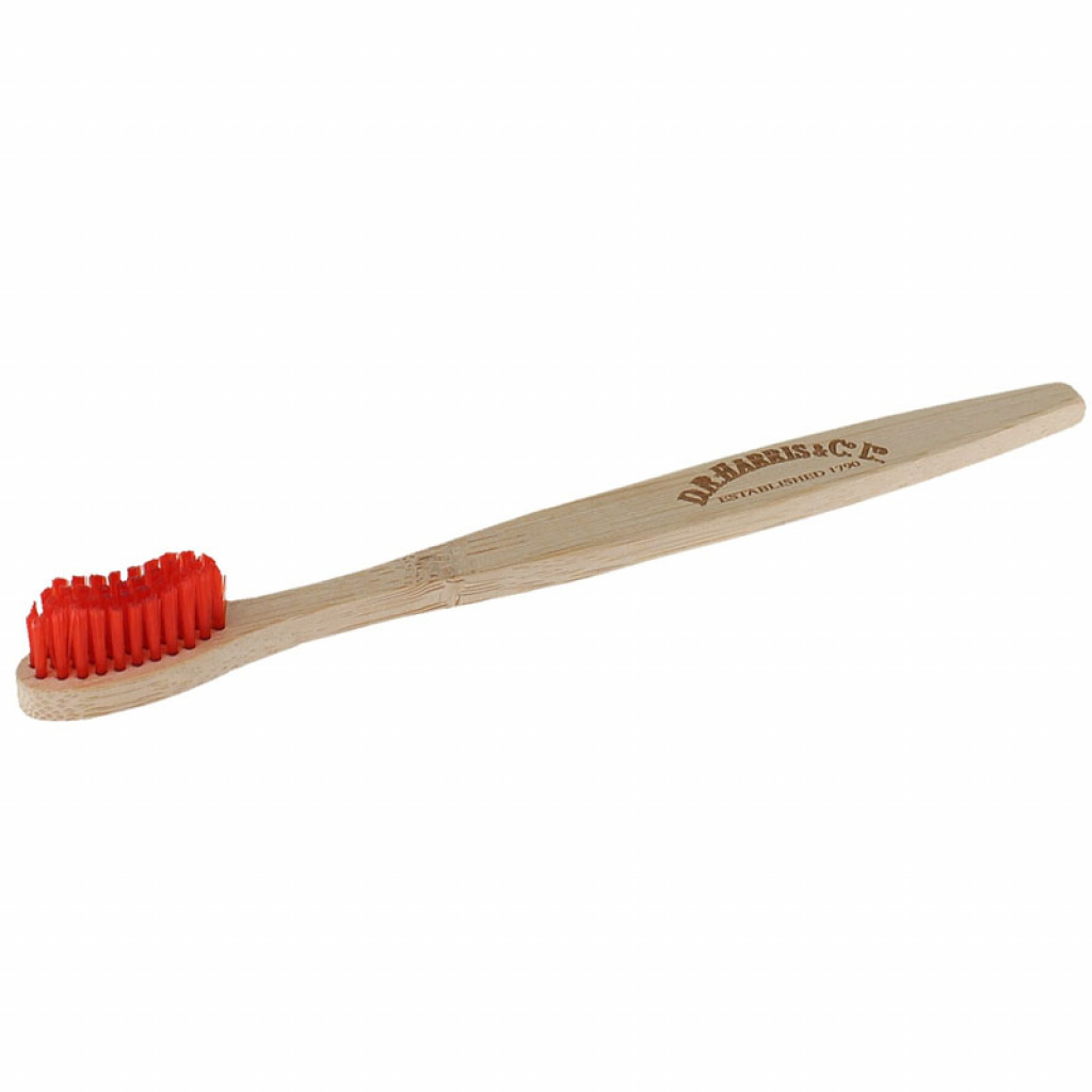 Biologicky rozložitelný zubní kartáček z bambusu se středně pevnými nylonovými štětinkami.