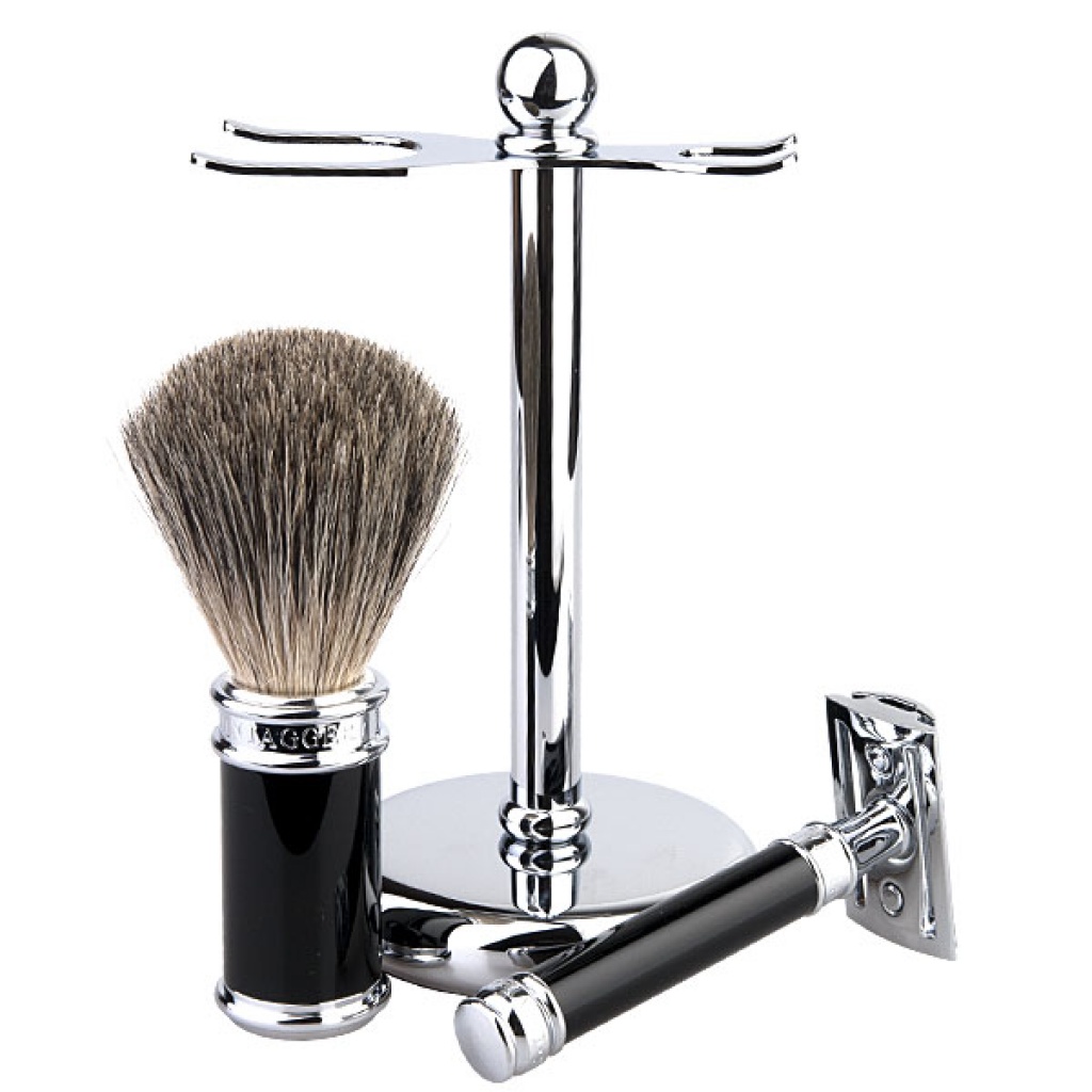 Pro milovníky kvalitních věcí, které jsou užitné a zároveň lahodí oku zde máme trojdílnou poniklovanou sadu na holení v kombinaci s imitací ebenového dřeva značky Edwin Jagger.
