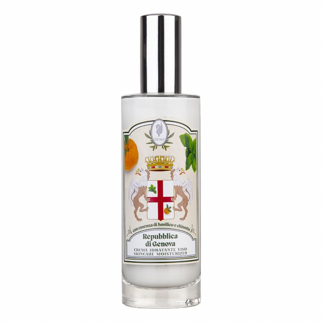 Pleťový krém Repubblica di Genova lze použít nejen jako hydratační krém, ale také jako balzám po holení. Krém je složen z olivového oleje, oslího mléka, mandlového oleje, kakaového másla a měsíčkového oleje. Tato směs zaručuje, že pokožka bude skvěle hydratovaná, jemná a provoněná hořkými savonskými pomeranči, bazalkou a kafrem.