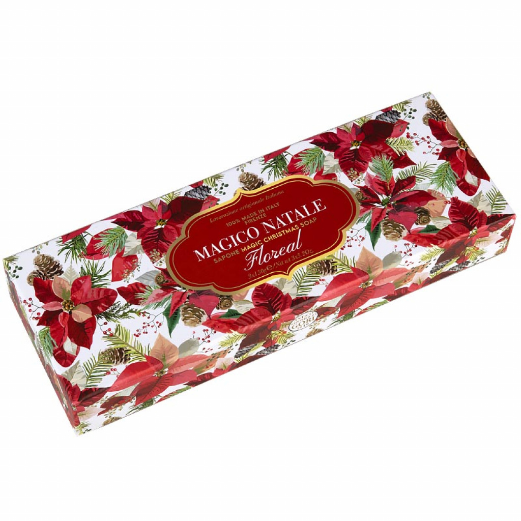 Sada ručně vyráběných mýdel s červených květů. Mýdla jsou za studena lisované starodávnou technologií užívané ve Florencii. Kromě vůně je jeho další předností přírodní složení.