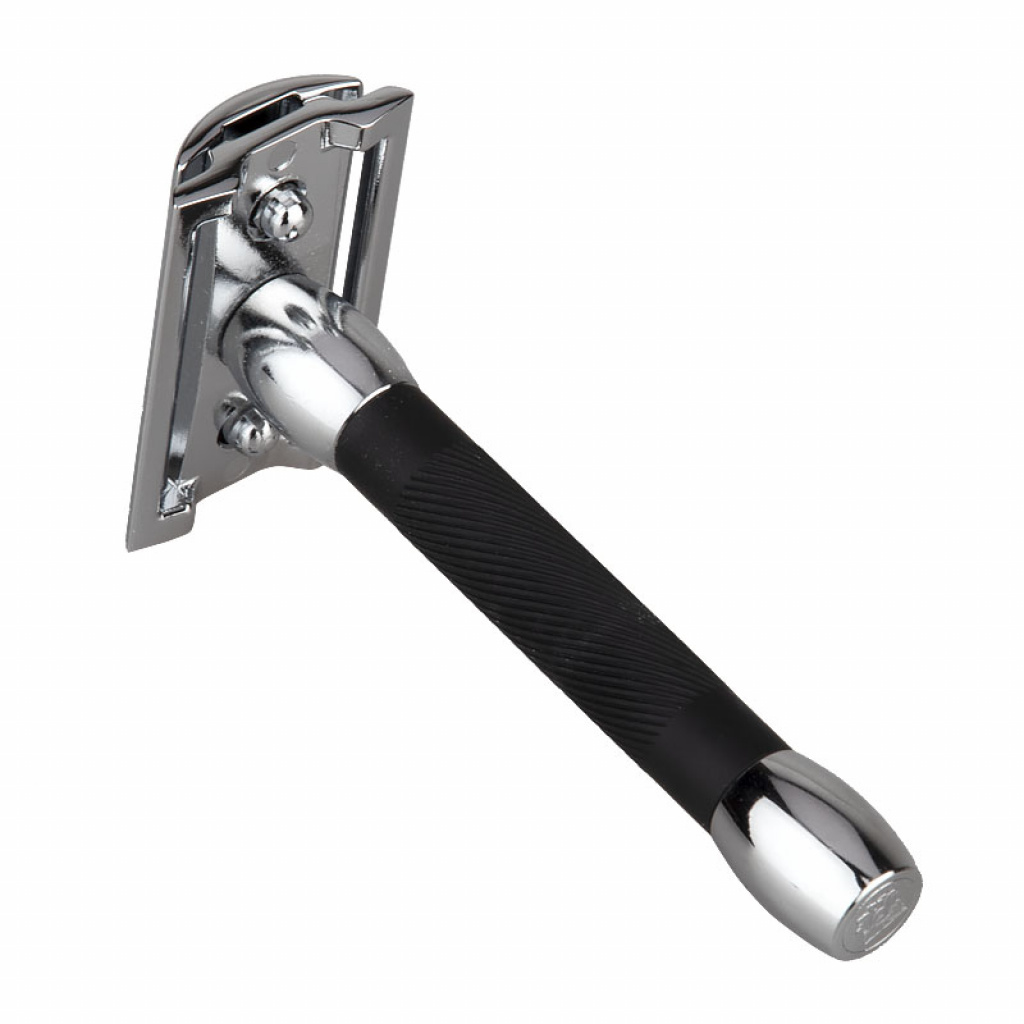 Žiletkový holicí strojek s kratší, hluboce rýhovanou rukojetí, která je vyrobena z eloxovaného hliníku. Uzavřená, méně agresivní hlava je vyrobena z pochromované mosazi. Holicí strojek je vhodný pro častější holení nebo jemnější až normální vousy.
