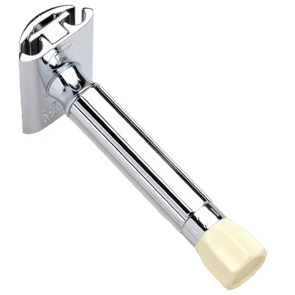 Pochromovaný kovový holicí strojek na klasické žiletky od firmy Merkur Solingen. Díky pětipolohovému nastavení prohnutí žiletky je strojek vhodný jak na každodenní holení tak i na holení delších vousů. Vybroušená rukojeť umožní bezpečnější držení strojku.