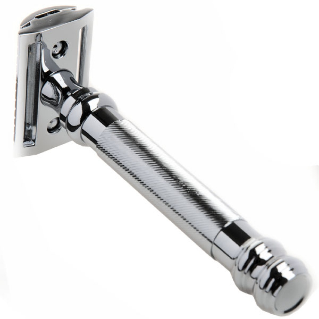 Trojdílný strojek na klasické žiletky, který ocení zejména ti, kteří se holí denně. Tato supertěžká váha mezi strojky vám zaručí hladké oholení i bez velkého tlaku na pokožku. Pochromovaná mosazná konstrukce zaručuje jeho vysokou odolnost.