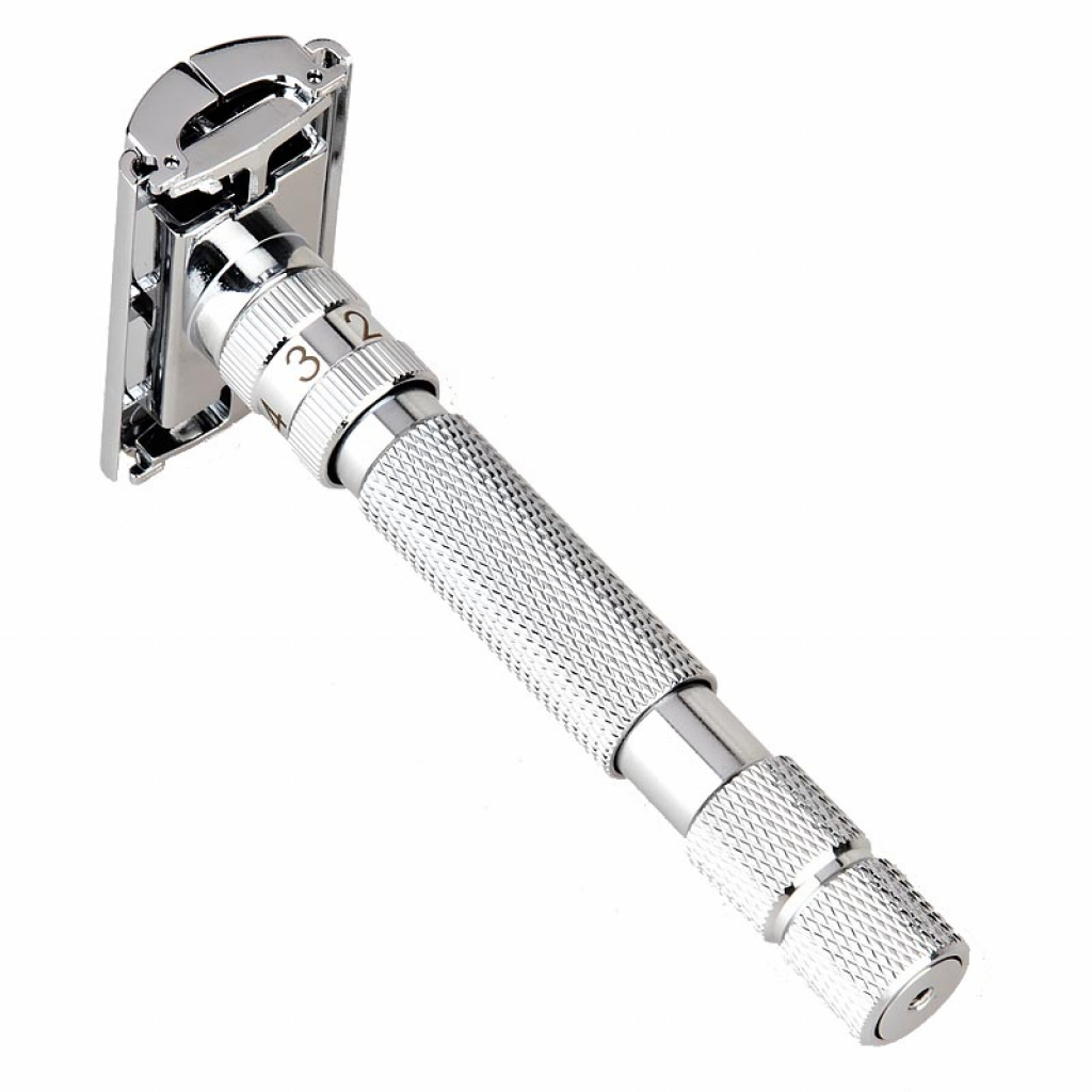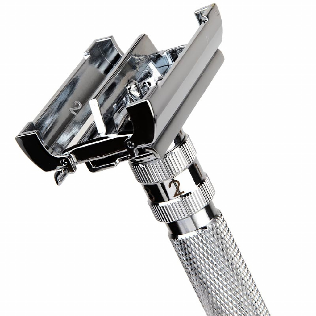 Vysoce kvalitní holicí strojek s možností plynulé regulace jemnosti holení, kdy nejjemněji oholení nabízí poloha 1 a nejagresivněji poloha 6. To je výhodou, že si podle vašeho typu pokožky, délky vousů nebo jejich tvrdosti, zvolíte agresivitu holení, tak jak vám bude nejlépe vyhovovat. Holicí strojek Rockwell T2 je vyroben z pochromované mosazi, nerezové oceli a slitiny zinku. Je dokonale vyvážen a díky jeho provedení je velmi intuitivní k užítí.