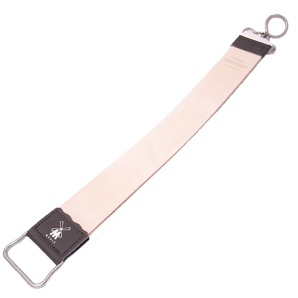 Obtahovací řemen s hovězí kůží na jedné straně a s plátnem na druhé. Slouží pro jemnější dobroušení břitvy. Součástí řemene je i žlutá obtahovací pasta.