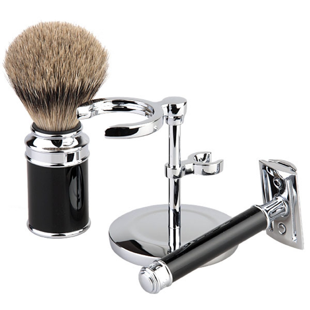 Pro milovníky kvalitních věcí, které jsou užitné a zároveň lahodí oku zde máme trojdílnou sadu na holení značky Mühle v černé barvě.