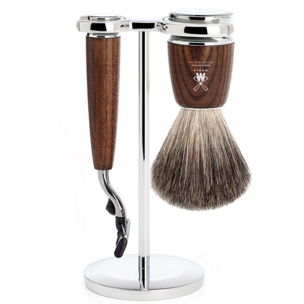 Luxusní sada pro ty, co jsou věrni vícebřitým nástavcům Gillette Mach3. Kombinace tepelně ošetřeného jasanu spolu s chromovanými prvky vytváří potěšení z holení.