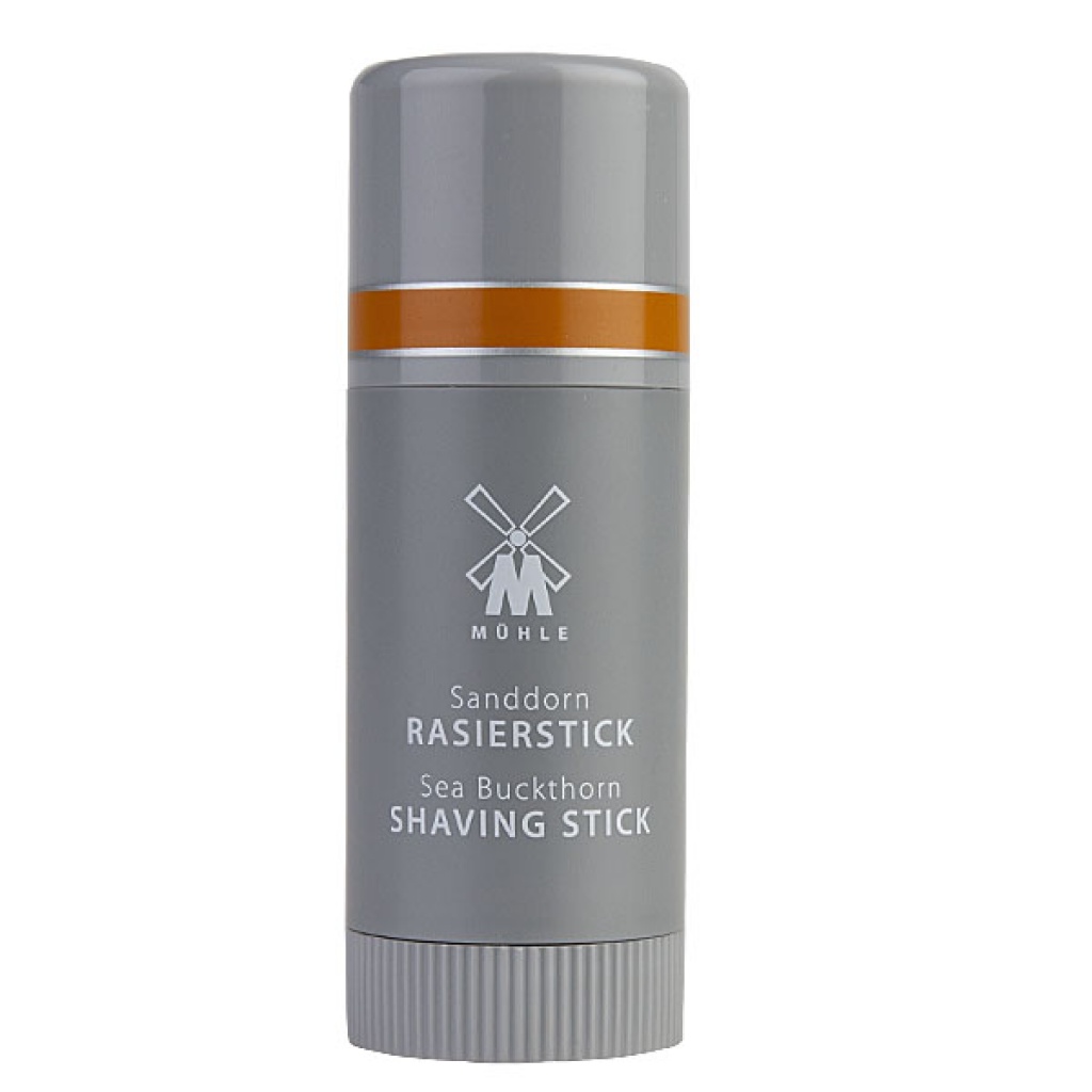 Tyčinka mýdla na holení Mühle Sea Buckthorn, které je vhodné pro všechny typy pleti. Použitý rakytník je získáván z pobaltských přímořských oblastí a je znám vysokým obsahem vitamínu C, stopových prvků a minerálů. V mýdle je použitý pro regeneraci buněčné struktury. Jeho svěží ovocná kompozice obsahuje vůni pomerančů a citronů.