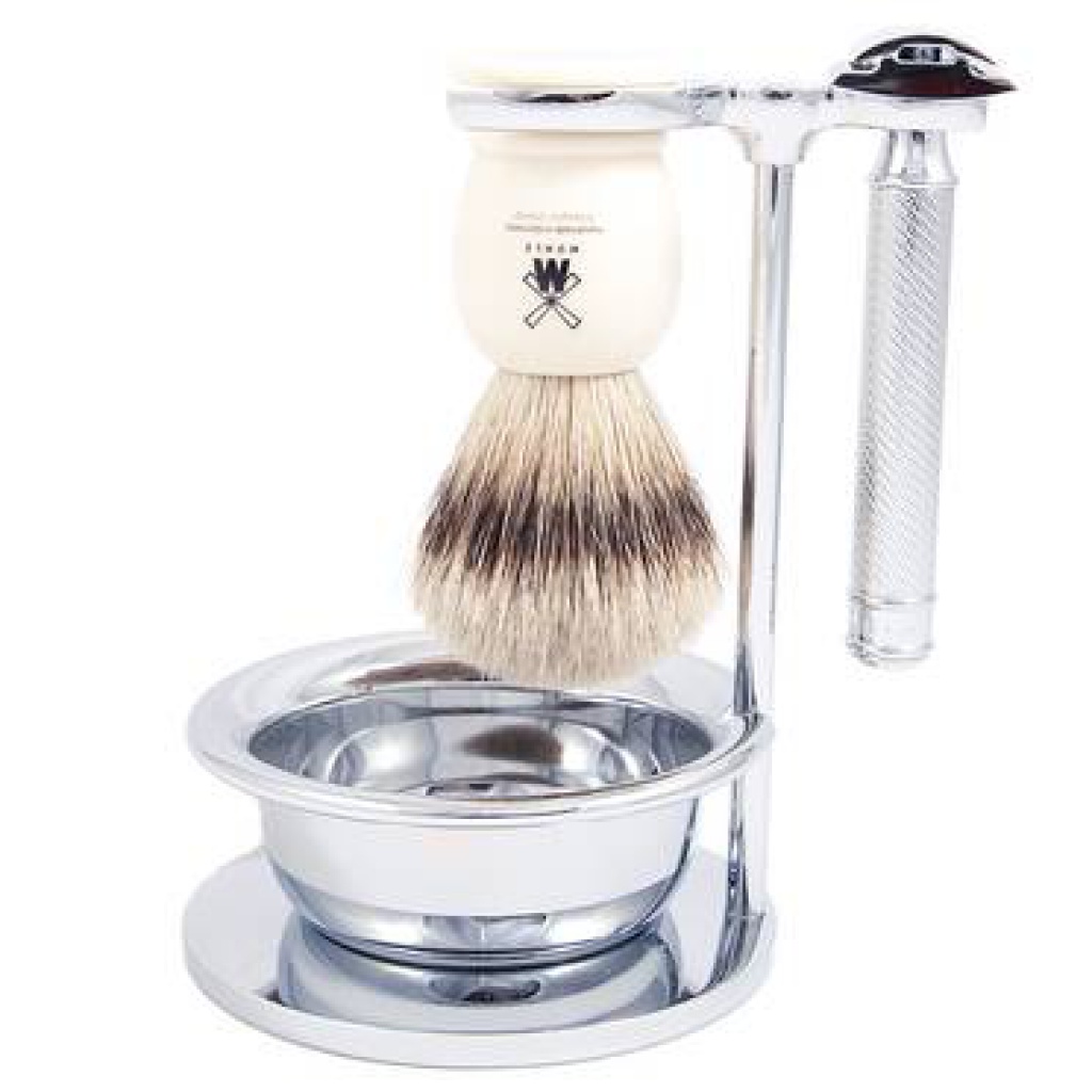 Mít vše po ruce není někdy k zahození. Moderní design a kvalitní materiál (chromovaná mosaz) jsou předností tohoto stojánku na holicí štětku a strojek s miskou, jehož hmotnost zajistí dokonalou stabilitu. V oddělitelné misce snadno vyšleháte hustou pěnu a váš holicí rituál může začit.