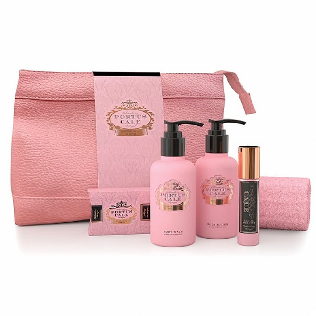 Dámská cestovní sada v luxusní tašce s jemnou květinovou vůní připomínající červené ovoce, ananas, mandarinky, karamboli, jasmín, gardénii, lotosový květ, jantar, santalové dřevo, vanilku a karamel.