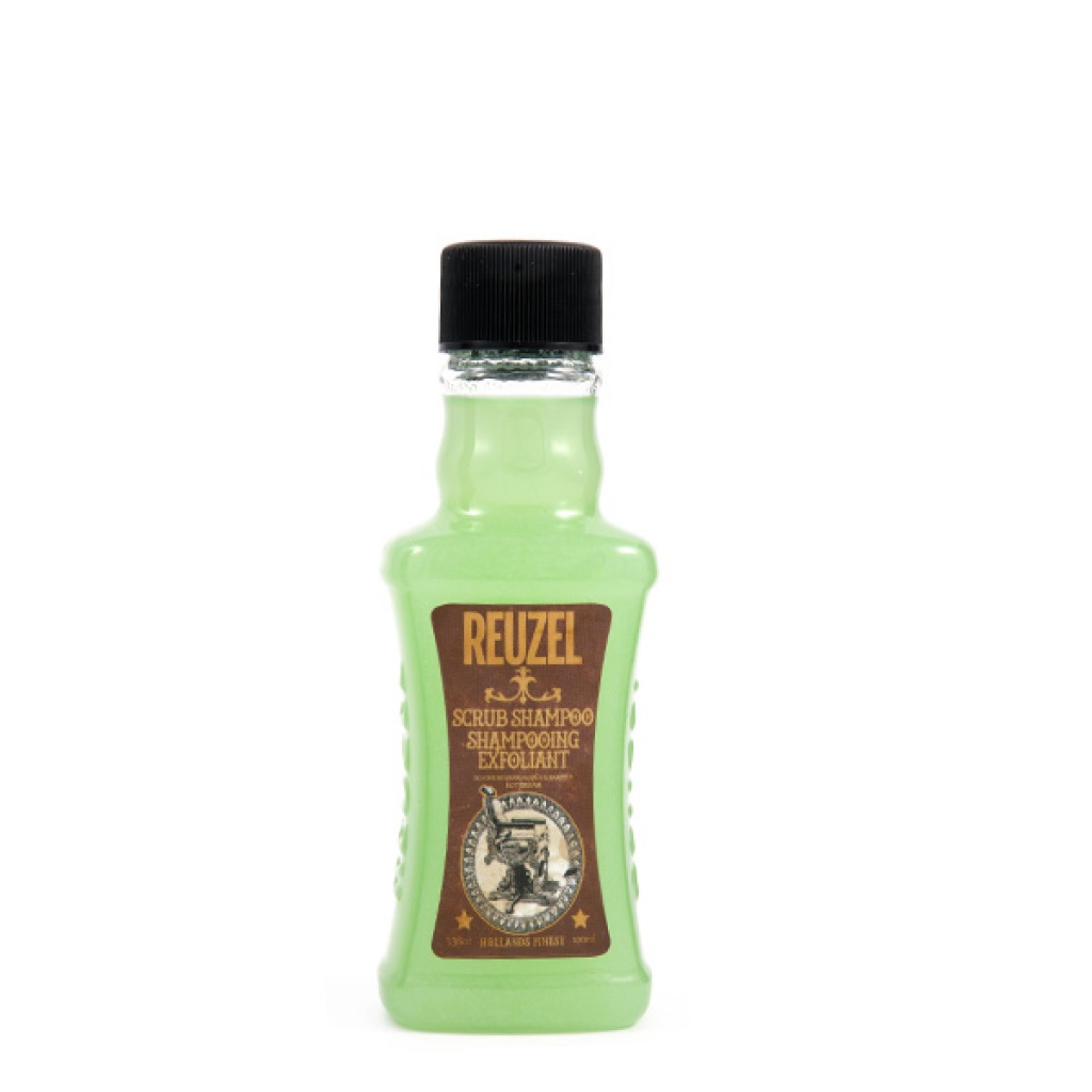 Hluboce čistící šampon na vlasy Reuzel s výtažky z listů kopřiv, rozmarýnu a přesličky. Díky peelingovým částečkám účinně odstraňuje mastnotu i silně fixační pomády z vlasů.
