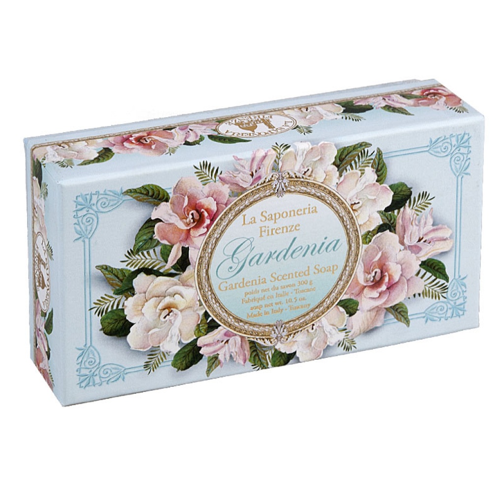 Velké 300 gramové mýdlo s květinovou vůní gardénie. Použít lze nejen na mytí, ale také jako voničku do skříní, ložního prádla či do koupelny.