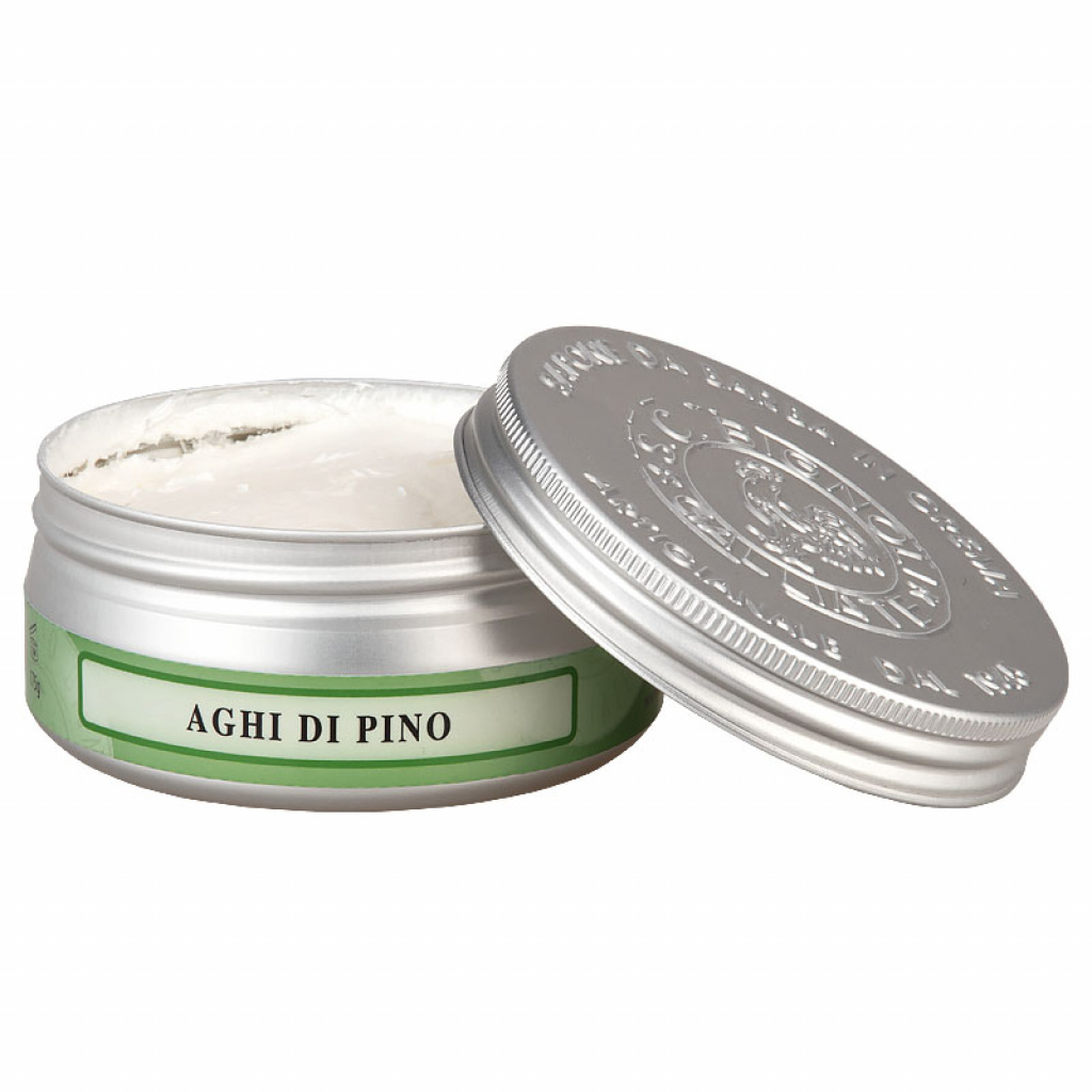Krém na holení vyráběný v malých nákladech řemeslné výroby. Do krému bylo použito těch nejlepší přírodních ingrediencí, které zaručují bohatou pěnu a tolik potřebnou klouzavost. Krém Aghi di Pino má vůni borového lesa složená z tónů borového jehličí, tymiánu, levandule, pižma, vetyveru a dubového mechu.