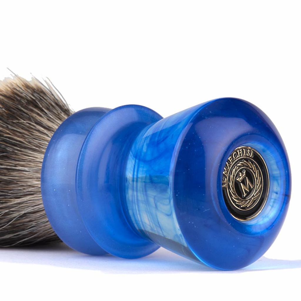 Odolná rukojeť je vyrobena z perleťově modře pigmentované epoxidové pryskyřice vespod ozdobena kovovou značkou písmene M, typickou pro produkty Il Marchese. Staňte se jidným majitelem na světě tohoto jedinečného nereprodukovaného kusu.
