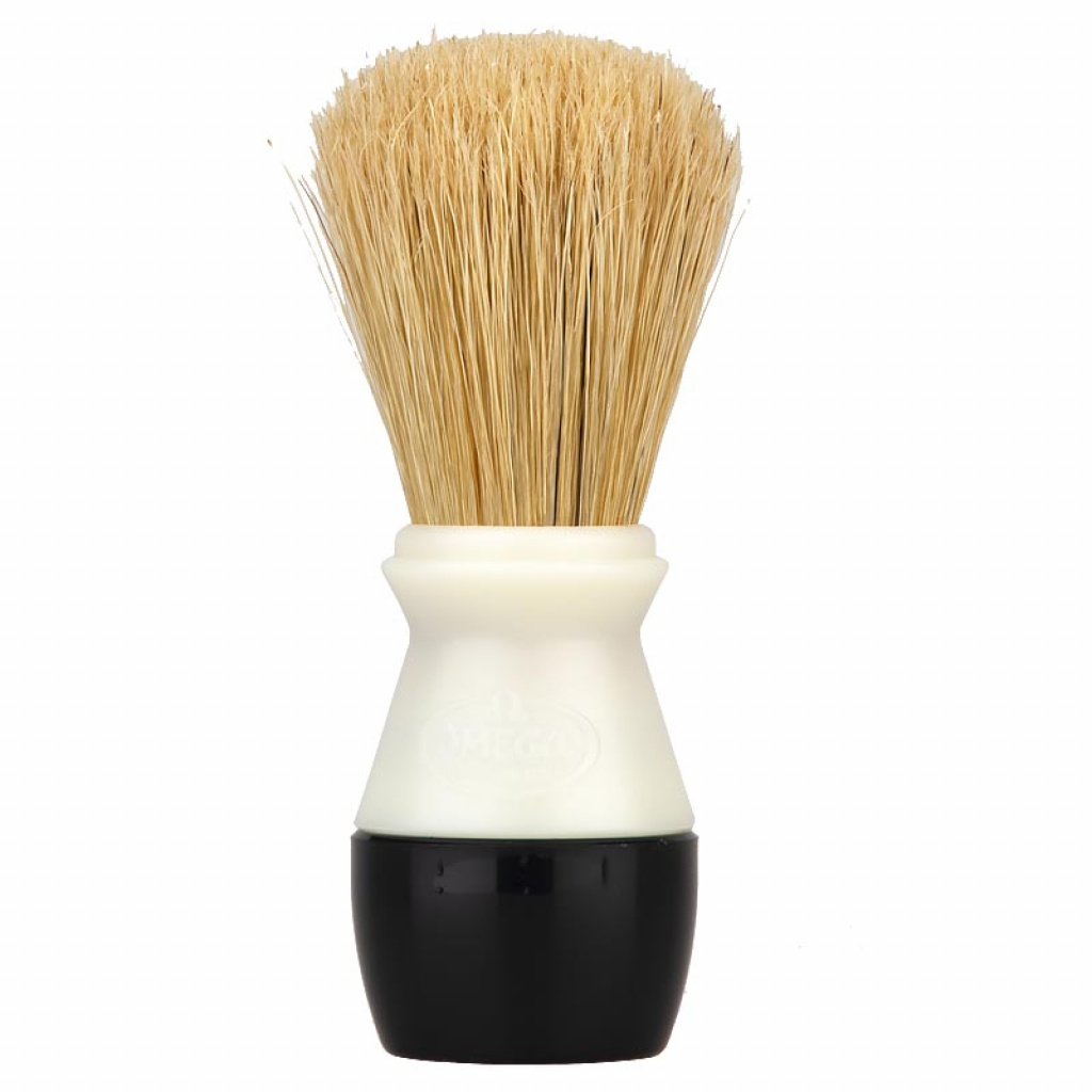 Štětka Omega z prasečích štětin, které se vyznačují svou větší hrubostí oproti jezevčím štětinám. To však není na škodu, protože mají nejen silnější masážní efekt, ale taktéž při nanášení mýdla či pěny na holení efektivně odstraňují odumřelou pokožku. Rukojeť je vyrobena z plastu.