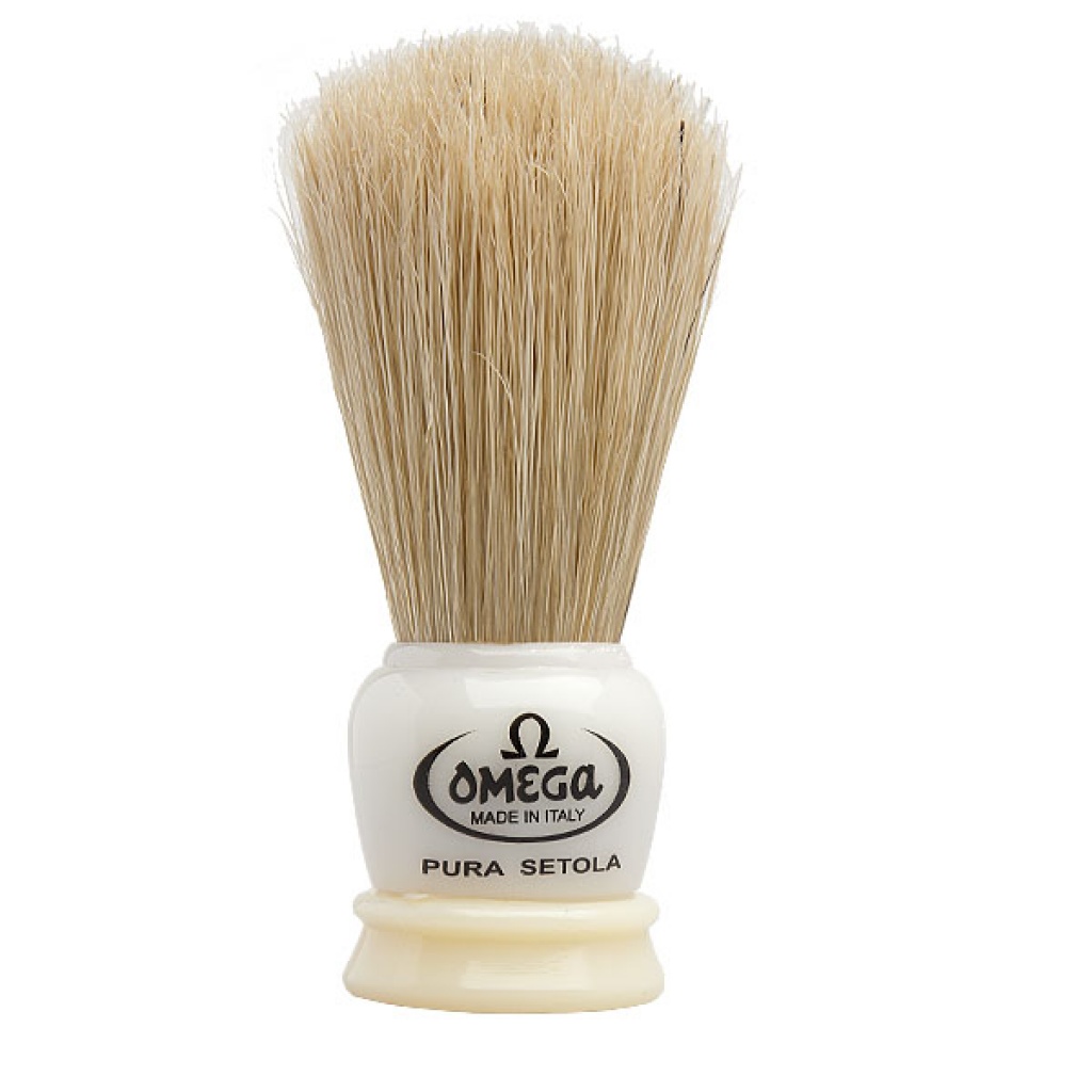 Štětka Omega z prasečích štětin, které se vyznačují svou větší tvrdostí oproti jezevčím štětinám. To však není na škodu, protože mají nejen silnější masážní efekt, ale taktéž při nanášení mýdla či pěny na holení efektivně odstraňují odumřelou pokožku. Díky svým rozměrům si ji oblíbíte obzvláště na cestách.