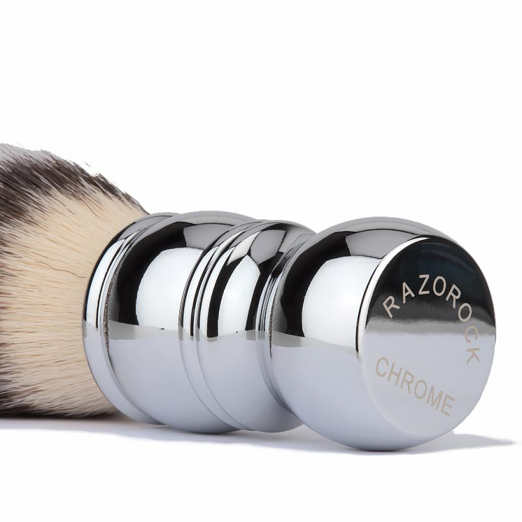Těžší štětka na holení typu barber s delší kovovou rukojetí. Hustě vázané štětiny jsou ze syntetických vláken Plissoft. Vynikají skvělou savostí a obzvláště příjemnou hebkostí. Další výhodou syntetického vlákna je jeho rychleschnoucí vlastnost oproti přírodním štětinám. Pro dokonale vyšlehanou pěnu doporučujeme lehce přitlačit.