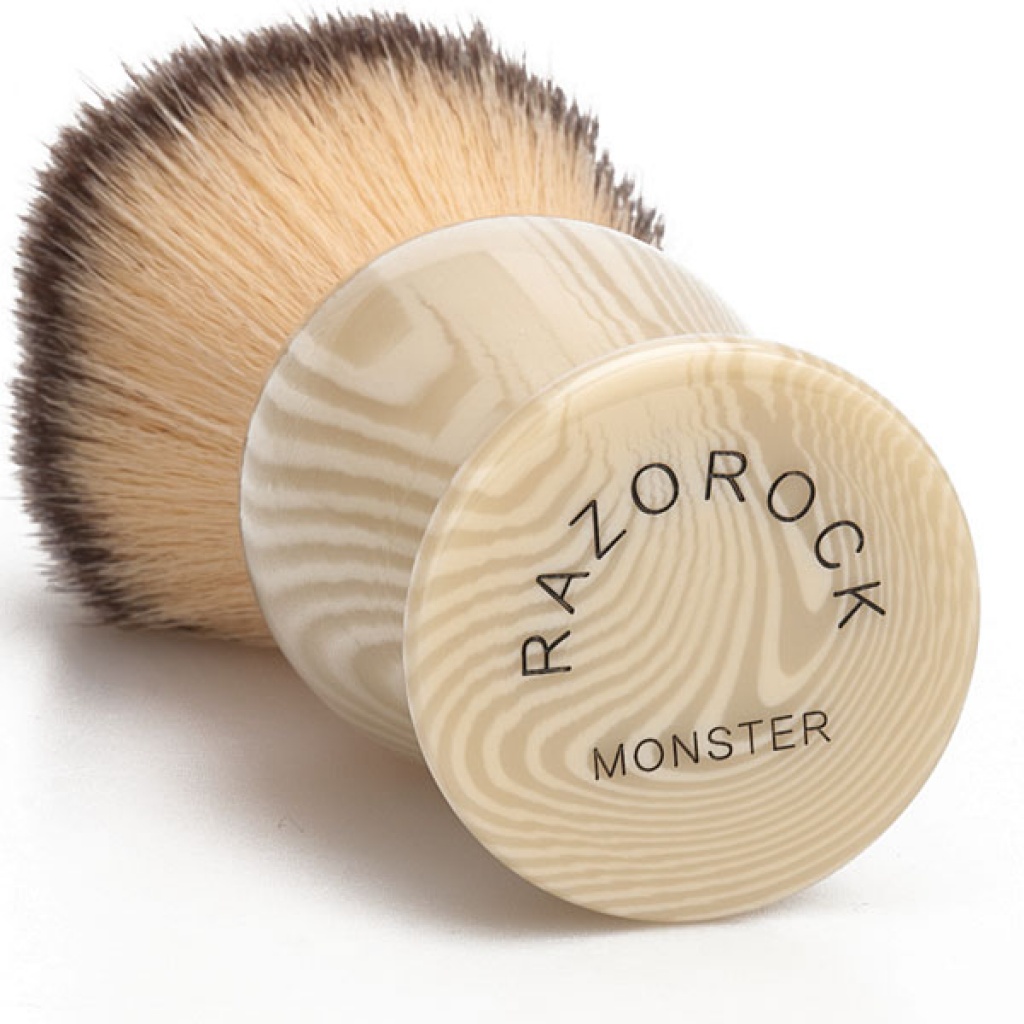 Robustní štětka na holení s rukojetí z tvrzené odolné pryskyřice. Hustě vázané štětiny jsou ze syntetických vláken Plissoft. Vynikají skvělou savostí a obzvláště příjemnou hebkostí. Díky své monstrózní velikosti nedoporučujeme na zaholování kontur.