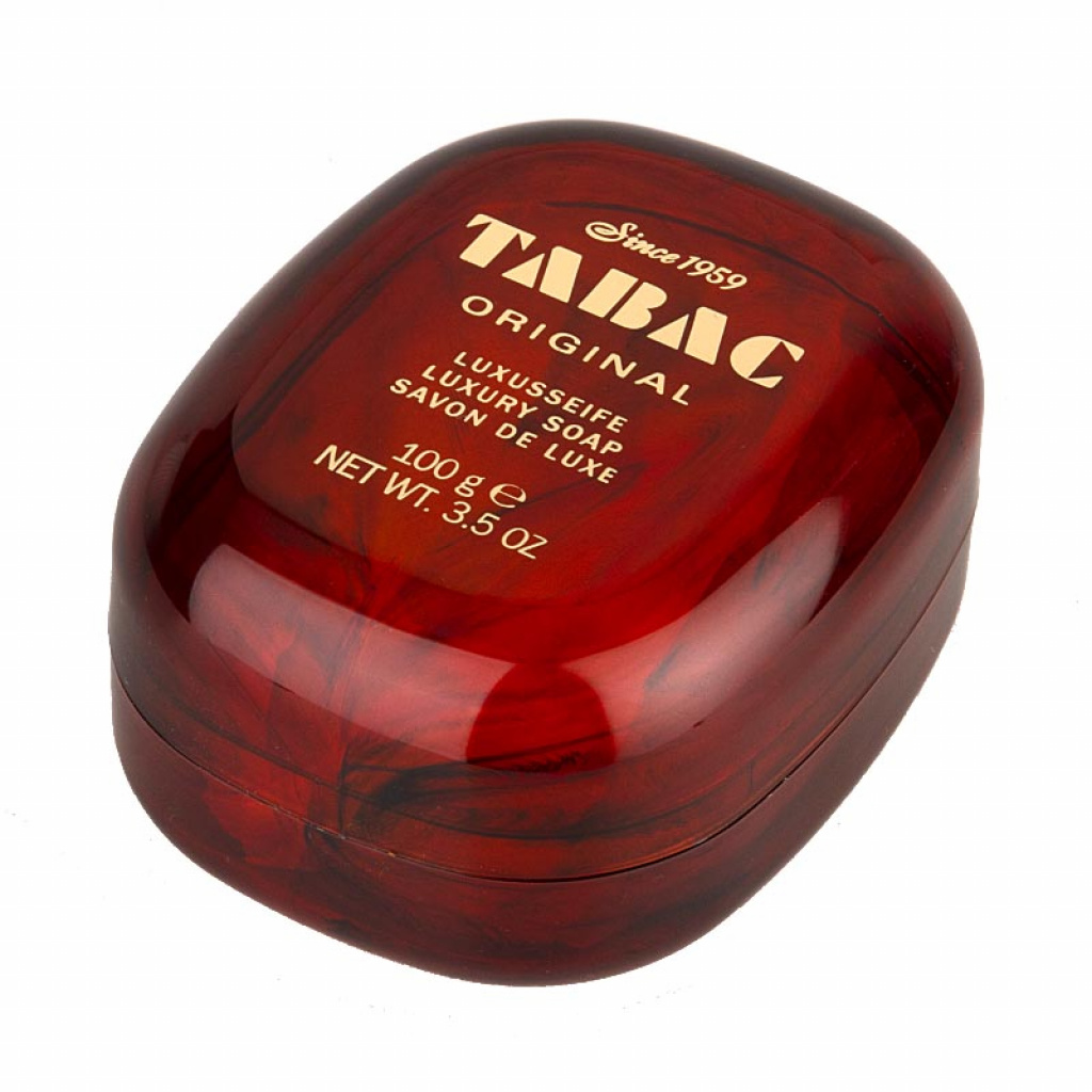 Klasické mýdlo v plastové cestovní krabičce s nezaměnitelnou vůní Tabac Original.