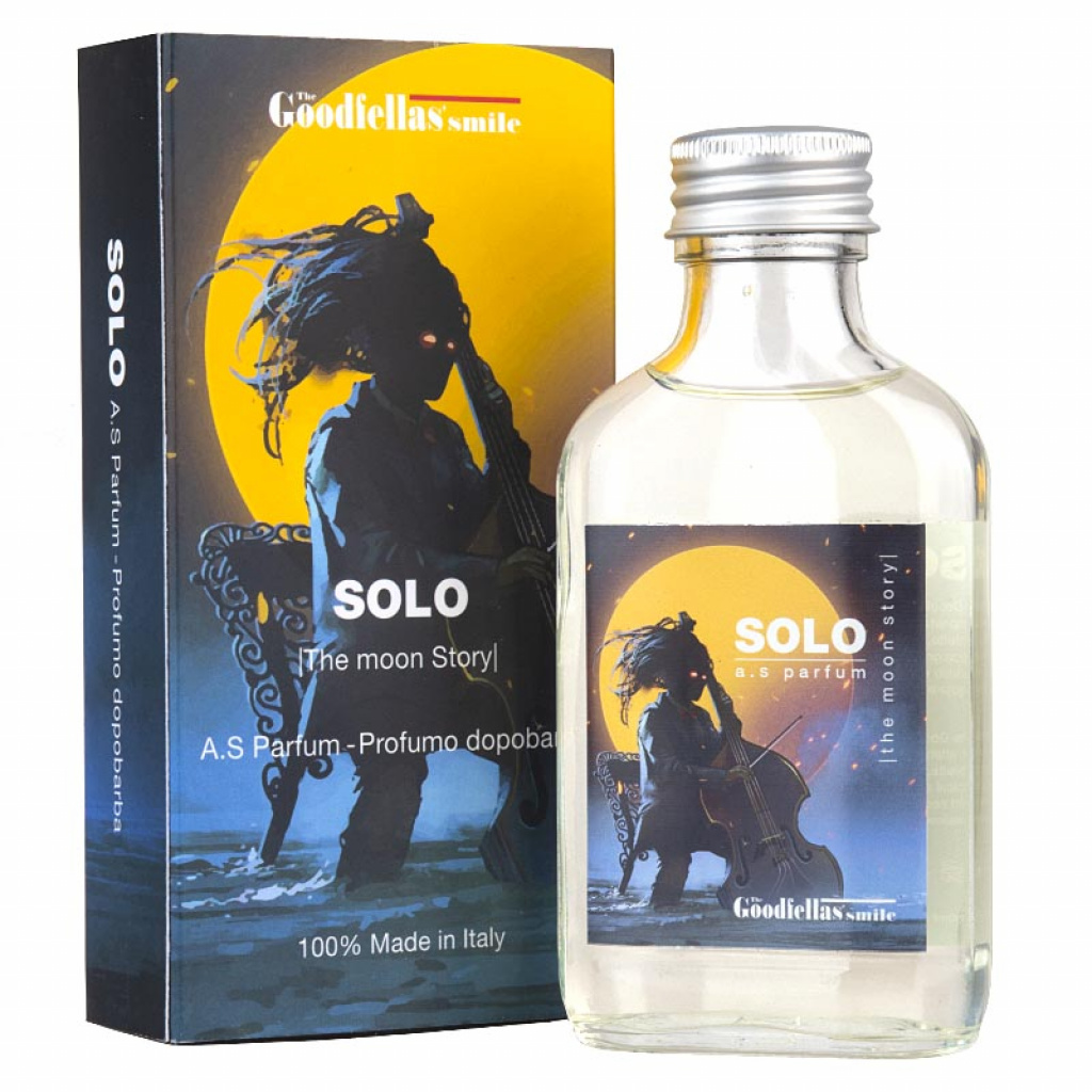 Parfémovaná voda po holení Solo od The Goodfellas' Smile patří díky vysokému podílu parfému k dlouhotravjícím a výrazně vonícím vodám po holení. Vyšší obsah alkoholu zaručuje poctivou dezinfekci po oholení. Její vůně je romantická, ale zároveň mužná. Skládá se z citrusů, eukalyptu, jasmínu, gardénie, muškátu, ambry, tonka fazole, santalového dřeva , pižma a vetyveru.