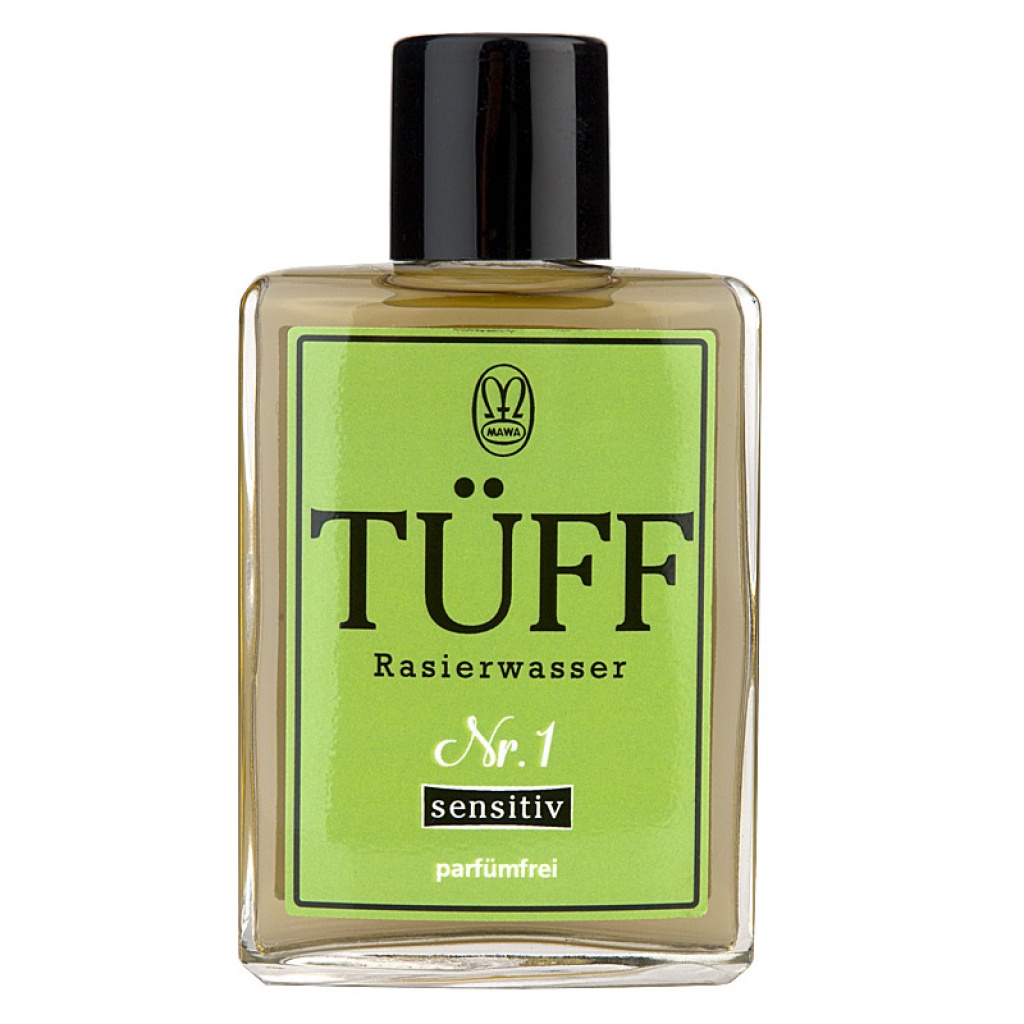 Tüff jemně parfemovaná voda po holení pro citlivou pokožku. Obsahuje velice kvalitní rostlinné extrakty: výtažky z heřmánku, měsíčku, přesličky, díky kterým se snižuje riziko zánětu, podporují regenerační proces a změkčují pokožku. Obsažený mentol posiluje čistící účinky alkoholu.