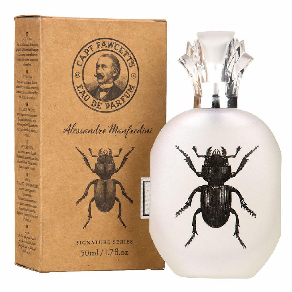 Tester parfemované vody vzniklé z kolaborace Captain Fawcett s italským bělovousým modelem Alessandrem Manfredinim. Speicifická, dřevitě kořeněná vůně se svrchními tóny rozmarýnu a badyánu kombinovaná se středními tóny svěžího bramboříku, protkaného ambrou, cedrovým dřevem a tonka fazolkami. Jemnější vůně parfému je vhodná na celodenní nošení.