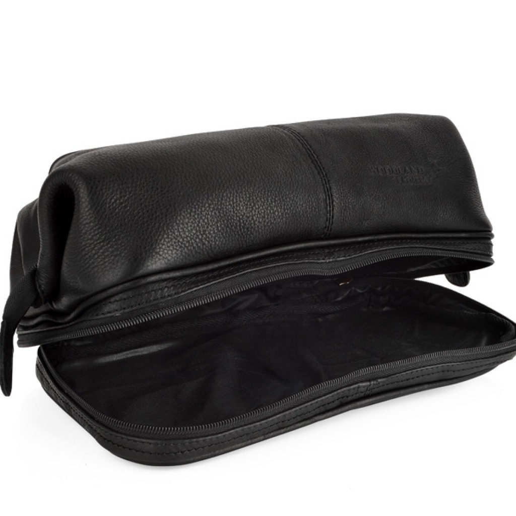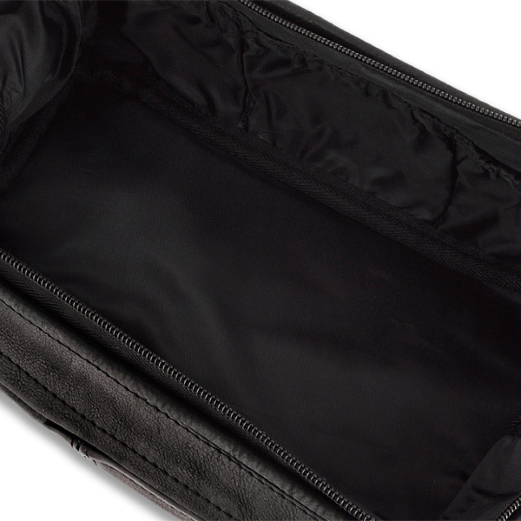 Prostorná toaletní taška vyrobená z kvalitní kůže s vodotěsnou podšívkou a menší spodní kapsou vhodnou pro oddělení mokrých věcí od suchých.